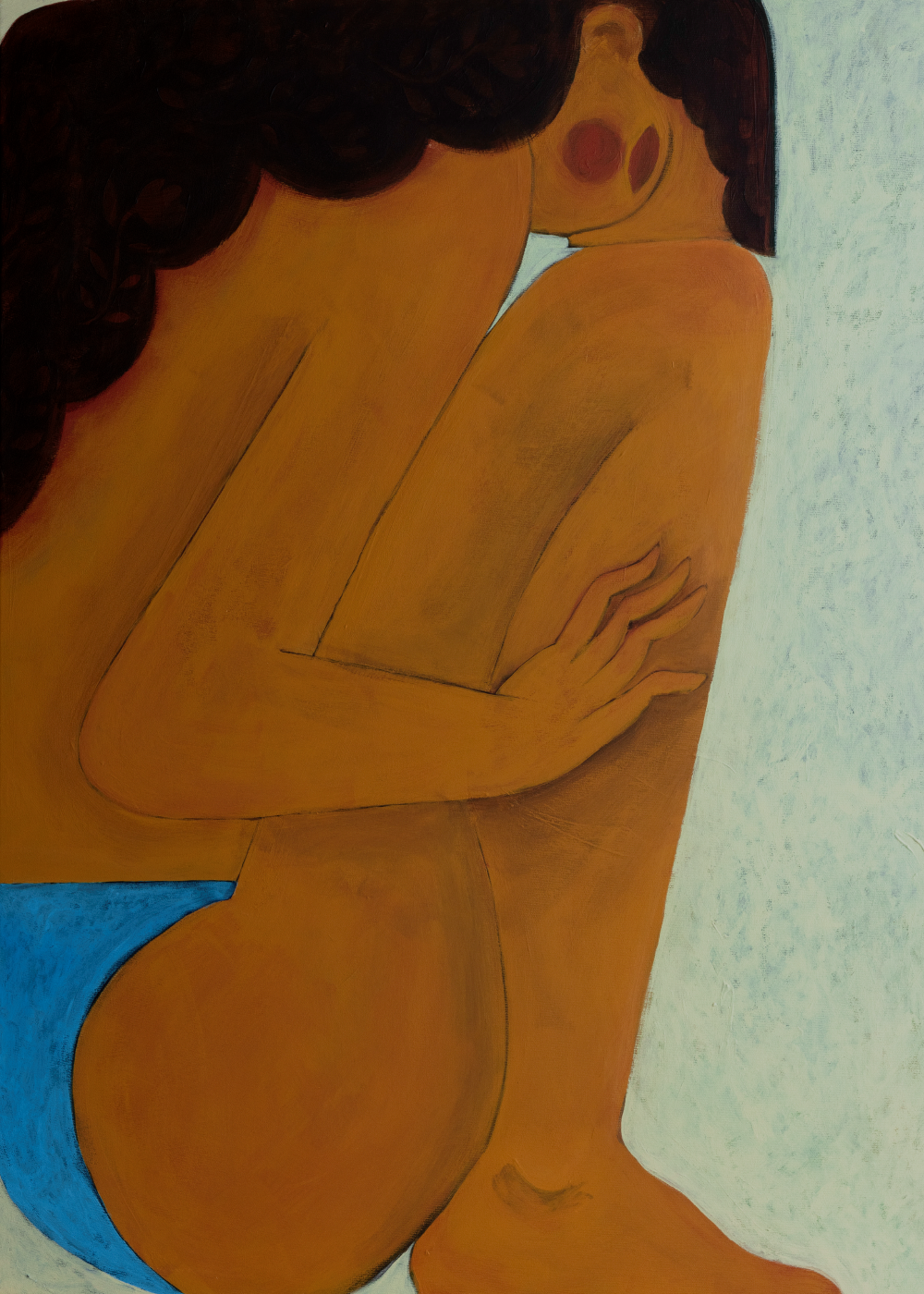 From Liquid to Solid follows a single female figure as she attempts to break out of the borders she finds herself within. Through soft earthy tones and vibrant blue, Danish artist Sara Mai interperets the human form as maluable and in constant dialogue with the surrounding environment, highlighting our own ability to adapt and overcome adversity.