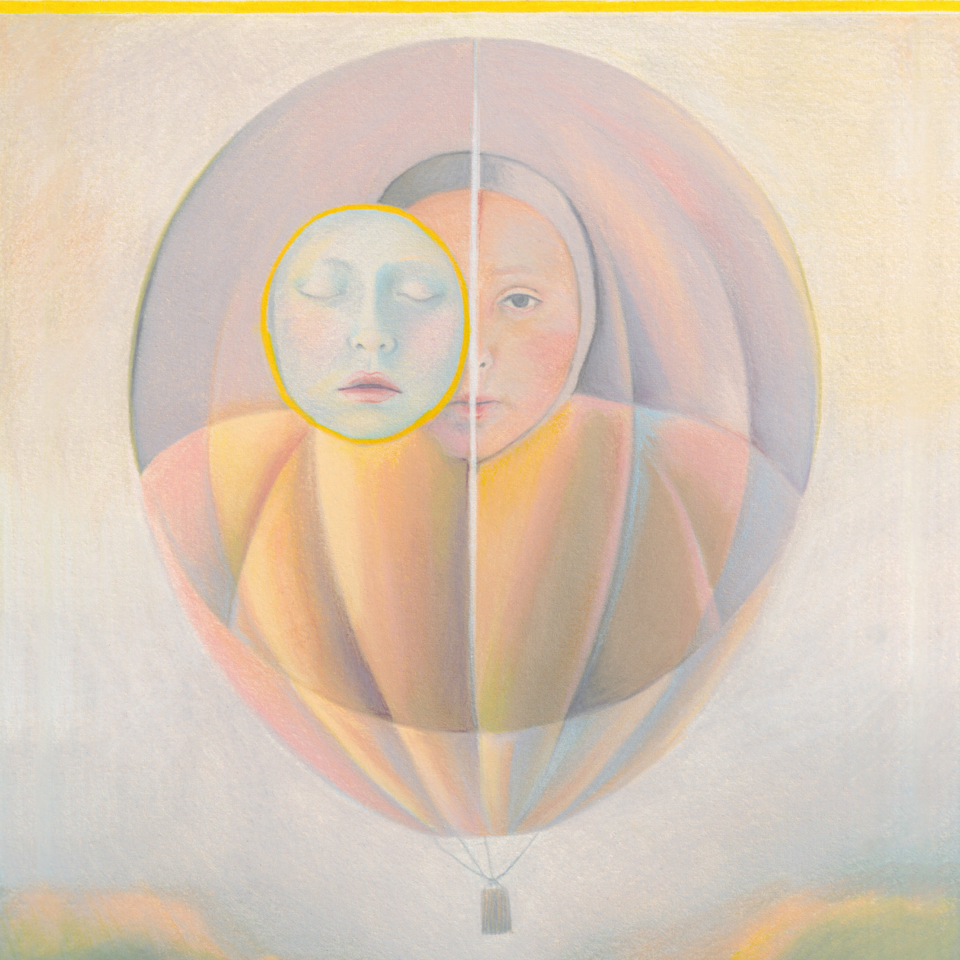 Reflecting on self-perception, identity, and introspection, Mask in Blue by Portugese based artist Kareena Zerefos explores the serene spaces between our hidden and visible selves. Delicately rendered through coloured pencil on arches paper, a single figure emerges from the ruffled exterior of a hot air baloon - a floating composition with a sense of lightness and depth.
