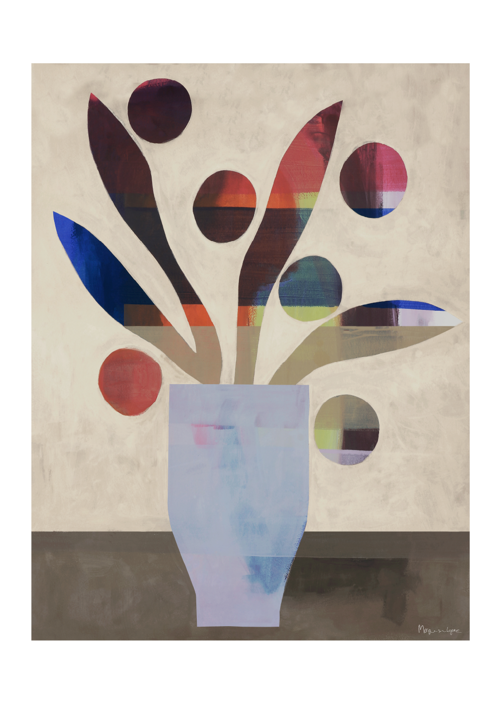 Berit Mogensen Lopez' latest collection of art prints combines a touch of simplicity to abstract floral compositions. Sanseviera is a beautiful artwork created from cut-out paper - stencil like, overlapping a layered background of painted forms. Visible through each flower, these emerging layers emphasise the objects within each composition, creating a unique depth to the collection.